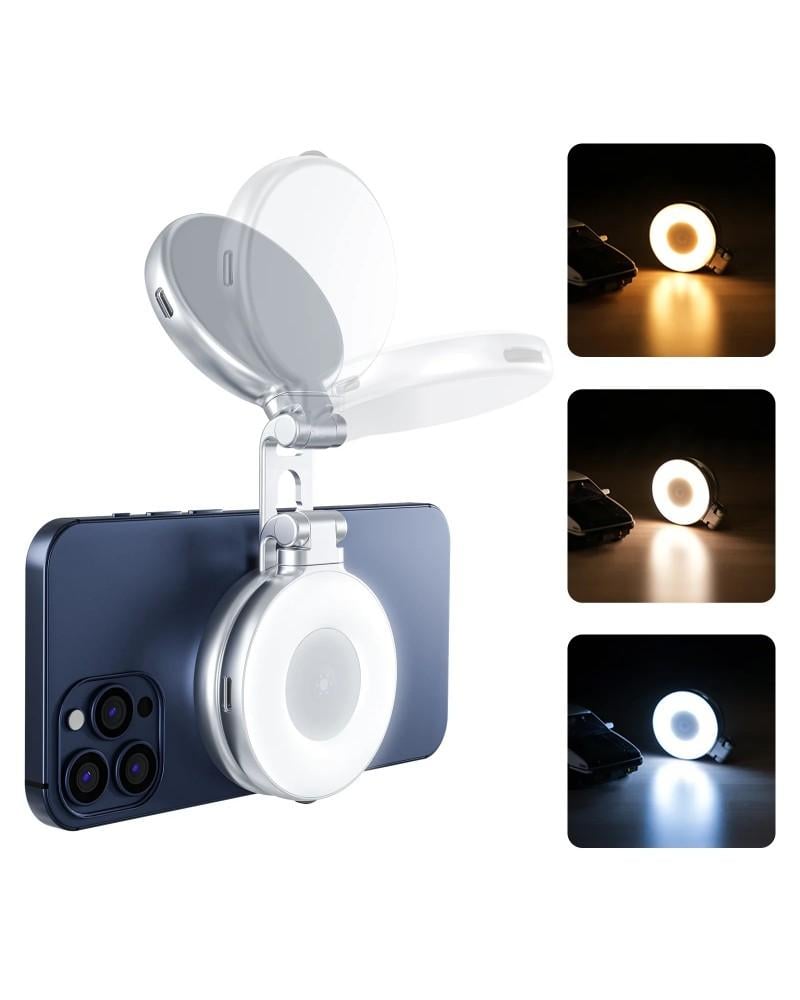 احصل على إضاءة بجودة الاستوديو في جيبك مع ضوء السيلفي المغناطيسي من TELESIN، المصمم للتركيب المباشر على أجهزة آيفون (12–16) عبر واجهة MagSafe أو باستخدام الحلقة المغناطيسية المرفقة ليتوافق مع أي هاتف آخر. يمنحك إضاءة 360° خالية من الظلال لصور سيلفي وفيديوهات ومكالمات Zoom واضحة ومثالية دون الحاجة لتعديلات متكررة.